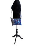 This unique one of a kind bag was created with Hallel Patterns Everly Bag Pattern. Constructed with musical note themed waterproof upholstery fabric and a water resistant interior. Features a unique front pocket ( Pocket is the entire width of the bag) Interior has card slots and a divided slip pocket. Measures 11.75 inches wide by 8.5 inches high by .5 inch deep.