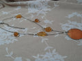 Featuring a smooth, round pendant in translucent, warm amber tones, framed in a sleek silver setting. Faceted golden beads and tiny pearls along the chain catch the light beautifully, adding subtle sparkle and depth. Total chain length is 18 inches with 2.5-inch extender.