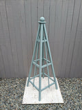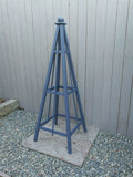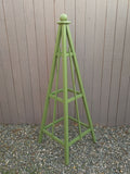 Solid stained pine obelisk with sphere or Spire finials. These are beautiful vertical gardening structures with character.