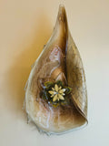 Paying homage to the ocean, Amelia evokes the imagery of seashells and starfish in soft autumn colors. She measures 8" across and 18" tall, enabling her to hold her own on any wall in your home.