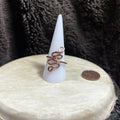 Crafted from reclaimed copper, the Copper Squiggle Ring offers a unique, eco-friendly accessory that shines with a natural charm. Each ring is polished to a high shine yet left untreated to develop a beautiful patina over time, enhancing its individuality. Designed with a low-profile squiggle shape, it adjusts easily up or down by 1/4 to 1/2 a size, ensuring a comfortable and personalized fit. This versatile ring adds a subtle, artistic touch to any outfit while celebrating sustainable craftsmanship. Embrace a piece that’s as distinctive as you are.