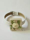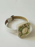 This exquisite bracelet is handcrafted using high-quality jewellery resin and real, preserved flowers. Each piece is unique, capturing a tiny, eternal garden on your wrist.