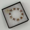 Elevate your accessory collection with this stunning natural stone bead bracelet. This piece features a harmonious blend of semi-precious stones in soothing neutral tones, including crystalline quartz, sunstone and moonstone. The beads are expertly strung together with elegant silver-toned spacers, creating a sophisticated pattern that catches the light beautifully. A delicate heart charm pendant adds a romantic touch to this versatile piece. The bracelet's balanced combination of frosted and textured beads creates a luxurious look that pairs effortlessly with both casual and formal attire. Perfect for gifting to others or treating yourself, this bracelet serves as a timeless addition to any jewellery collection. Each stone brings its own unique character to the piece, making every bracelet one of a kind. The durable elastic construction ensures comfortable wear while maintaining its shape throughout the day.