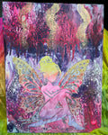 This beautiful fairy is sitting in their spiritual space reflecting. Reflecting on life. Reflecting on what came before and what is yet to become. There is a Lotus beside them. The symbols above their head are a Lotus (Abundance and Strength to name a few. Pink is the highest lotus enlightenment) and an Unalome (Journey to Enlightenment)