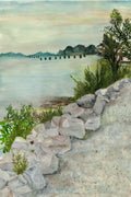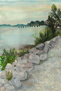 Beautiful riverside walkway along the Fraser River in Richmond BC. Family time fun or jog in the sunshine. Bring the peace and beauty of a river flowing to the sea with beautiful sunsets and calm vibes. Brind this decor to your yoga studio, entrance foyers, laundry rooms, spa, salons or cafe. Size 11x14 inch paper original watercolour art