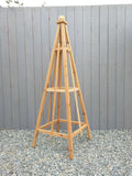 6' Western Red Cedar Obelisk with Sphere or Spire finial. These are beautiful vertical gardening structures made from select grade cedar which is long lasting and resistant to decay. We mill our own and also acquire lumber from local mills. Most lumber milled from trees has knots or other natural features which makes it less desirable for many higher end applications such as furniture or architectural uses but is perfect for outdoor garden structures. Select red cedar last as long as premium grade lumber and is structurally sound so it is perfect for low maintenance high intensity gardening. Select Red cedar in its natural state will last anywhere from 15-40 years above ground depending on local conditions, can be left outdoors in all four seasons.
