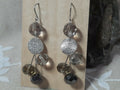 Elegant cascading drop earrings featuring faceted crystal beads in translucent gray-tones, paired with a textured silver disc that adds subtle sparkle. Finished with hypoallergenic titanium hooks, which are durable and resistant to tarnish. Refined, modern look perfect for both everyday wear and special occasions.